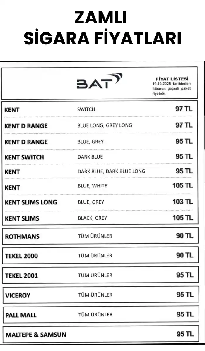 BAT fiyat listesi 2026 yılının ilk güncellemesi aldı. Daha önce 2025 yılı; 18 Ekim ve 29 Temmuz itibarıyla BAT sigara fiyatları zamlanmıştı. Buna göre Maltepe, Samsun, Kent, Lark, Pall Mall sigara fiyatları kaç TL oldu? İşte, British American Tobacco sigara fiyat listesi hakkında güncel bilgiler.